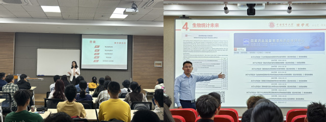 10日下午,生物统计学专业入学专业教育在实验楼A224进行。会前,罗文华副书记从学习、人际关系、生活状态、安全等方面对新同学们作出殷殷嘱托,希望同学们在老员工活中快乐学习、幸福成长。⾔⽅荣教授从⾃身经历出发,围绕专业介绍、专业形势、学科发展、⽣物统计专业未来发展等四个⽅⾯进行详细介绍。生物医药数据科学专业入学专业教育在教学楼A108开展。侯凤贞老师以2024年诺贝尔物理学奖与AI的关系作为切入,从专业基本概况,专业培养方案,毕业去向,同学们关心的话题等方面为同学们进行了详细介绍,为同学们适应老员工活与树立理想目标提供有效指导。讲解结束后,同学们就个人关系的话题与专业老师进⾏了深入交流互动探讨,现场氛围热烈。