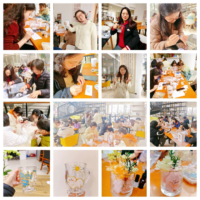 活动现场布置温馨雅致,大家纷纷化身“艺术家”,用手中的画笔和材料,尽情挥洒创意。老师们用五彩斑斓的颜料在玻璃杯上勾勒出精美的图案,每一笔都倾注了对美好生活的热爱;香薰杯制作过程中弥漫着沁人心脾的芳香,老师们将精油、干花等材料巧妙搭配,制作出一个个精致典雅的香薰杯,为生活增添一抹浪漫气息;五彩斑斓的闪亮贝壳片经过老师们的精心拼贴,制作出造型各异、栩栩如生的胸针,为春日穿搭增添一抹亮色。