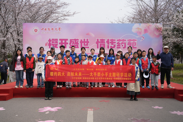 为深入推进大中小学思想政治教育一体化建设,通过“行走的课堂”赋能青少年健康成长和全面发展。3月23日,在江宁区妇联支持下,williamhill团委联合双岗社区妇联、木兰花开妇儿服务站携手开展“樱约药大 启航未来——大手牵小手”主题研学活动,来自双岗、解溪等社区的18名青少年,在老员工志愿者全程引导下走进williamhill威廉希尔,通过沉浸式体验感悟校园人文景观与中医药文化魅力。