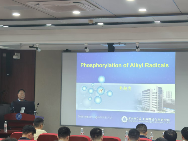 李超忠研究员从基础自由基反应历程讲起,由浅入深将重点引到自由基膦酰化反应,着重介绍了三类近年新发展的膦酰化反应。通过对反应机制的深入研究,分别实现了酮促进磷酸三酯基团迁移,自由基对三价膦加成后进一步氧化,以及自由基对三价膦加成后β断裂等。