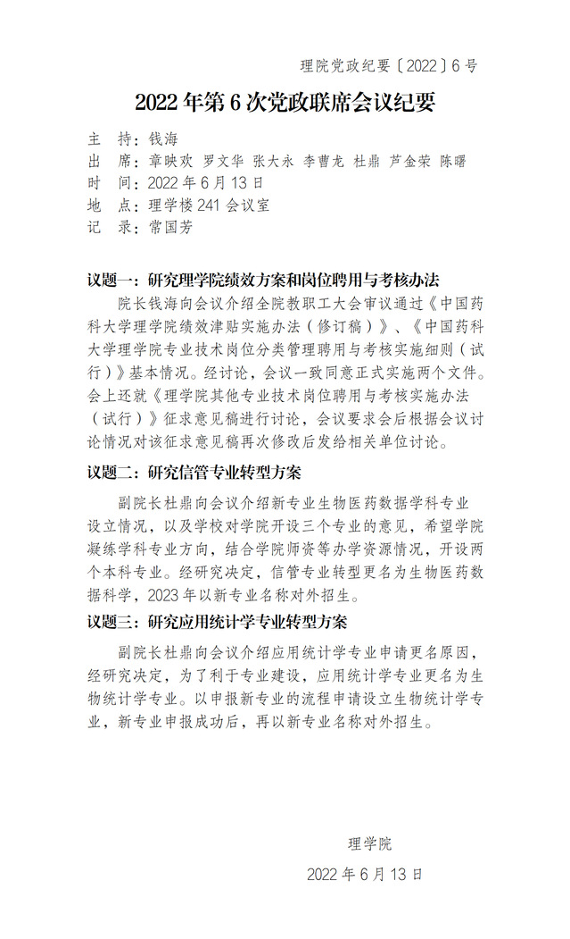 2022年第6次党政联席会议纪要