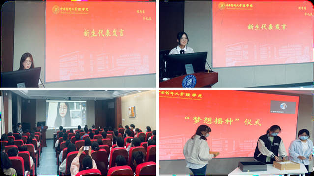 随后,赵芳宁、金晶、阿迪拉作为新生代表,围绕学习、生活、考研、就业等方面,以线上线下方式进行了交流发言,畅想了四年后的收获和成长。在院领导和老师们的见证下,大会还举行了“梦想播种”仪式,希望同学们今天播种梦想,明天通过努力奋斗拼搏,如期收获成长。