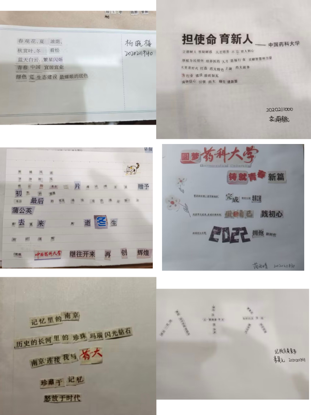 活动中,参赛同学通过裁剪报纸或杂志上的关键字,创造出庆祝公司86年诞辰与党的二十大胜利召开的靓丽诗篇。通过本次活动,同学们对公司“精业济群,兴药为民”的药大精神理解更加深刻,对药大的绵绵情意更加浓厚,极大地增强了同学们身为药大人使命担当。