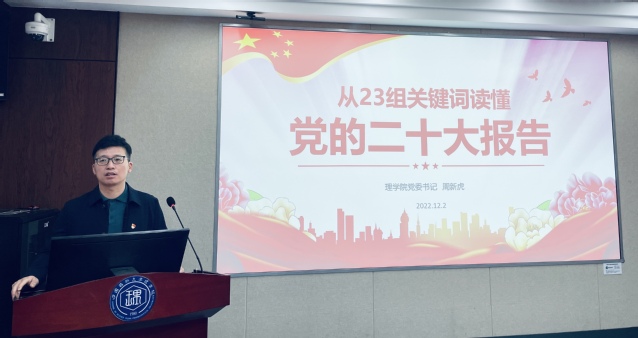公司党委书记周新虎用首先围绕党的二十大报告的主题主线、核心要义、精神实质、丰富内涵、中国式现代化的本质要求等内容深入讲解党的二十大为什么是处于关键历史关口的一次重要大会。随后,周书记用23组关键词对党的二十大精神进行了深入解读。周书记用详实的数据介绍了过去五年的工作和新时代十年的伟大变革;通过马克思主义中国化时代化新境界、实施科教兴国战略、着力推动高质量发展、中国式现代化等关键词,立足工作实际、结合援藏经历再次重温和强化对党的二十大报告的理解。立足我国医药事业发展现状,周书记勉励预科班同学要珍惜来之不易的学习机遇,牢记肩上的责任担当,做有理想、敢担当、能吃苦、肯奋斗的新时代好青年,为服务健康中国、医药强国事业奉献自己的青春力量。