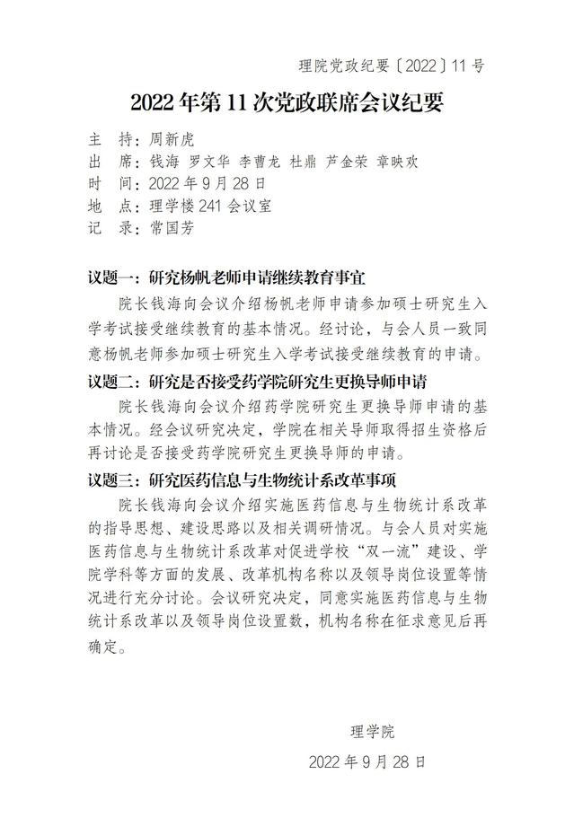 2022年第11次党政联席会议纪要