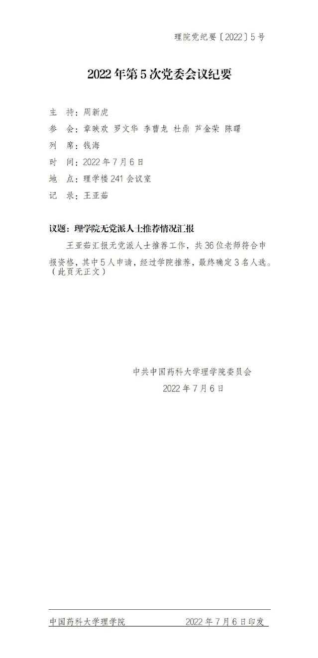 2022年第5次党委会议纪要