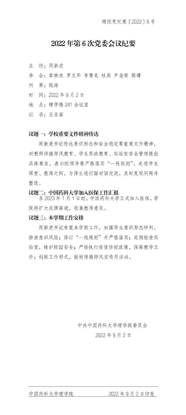 2022年第6次党委会议纪要