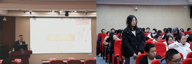 郭翔博士以“数字化药物研发中的数据科学人才需求”为主题向与会师生作报告,报告以制药行业的数据应用为例,详细介绍了制药行业数据现状及数据管理问题,指出数字化将重构新药研发生态,并深刻影响制药领域的发展和竞争格局,同时就AI时代给制药工业带来的新挑战,对数据科学人才提出更高要求,鼓励同学们树立专业自信,夯实技能本领,在时代需求和挑战中实现更好成长。交流环节,同学们与郭翔博士积极互动,郭翔博士结合自身成长经历,耐心解答同学们的问题,帮助同学们对制药行业中数据科学现状进行更加深入的了解,对自身职业规划和学习方向进行更加精准定位。