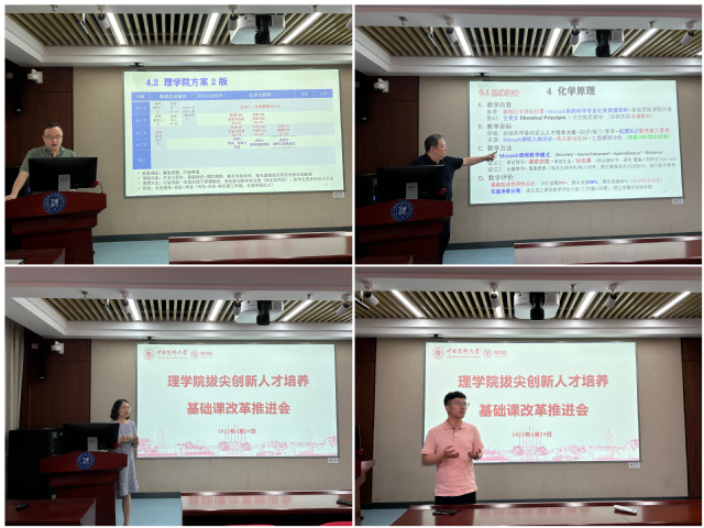 会上,杜鼎副经理首先传达了公司基础拔尖人才培养课程改革推进会的会议精神,并从教育理念、课程内容、课程设置、授课方式等方面详细介绍了目前公司拔尖人才培养基础课改革的推进情况,希望大家进一步解放思想,打破常规,不断强化基础知识和药学知识的融通,打造师生共同体。《化学原理》课程负责人李嘉宾老师从授课内容、教学目标、教学方法、形成性评价等方面详细介绍了《化学原理》课程理论和实验的设计方案以及教学团队的组建。随后,化学系、数理系、生物统计系及数据科学系分别汇报了拔尖创新人才培养课程建设改革思路、教学改革方案、建设进度等。与会教师围绕课程安排、课程内容、授课方式、考核评价等方面进行了深入探讨与交流。