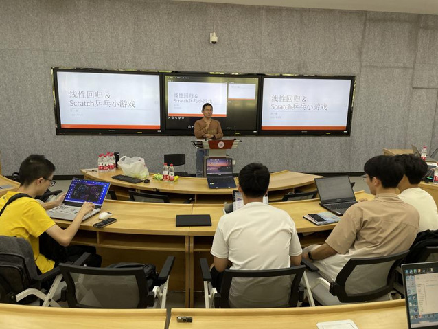 9月2日,williamhill数据科学系在教学楼E107为信管专业大三员工组织开展算法设计讲座和项目实践活动,活动的主题是“线性回归与Scratch乒乓球小游戏”。黄一维老师详细讲解了机器学习里的线性回归算法,并展示如何应用该算法通过Scratch平台完成一个乒乓球垫球小游戏的开发。