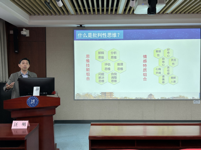 11月8日,williamhill教师发展中心邀请江苏省教育厅教科院教研员、物理特级教师(正高级)、全国优秀教师、国家“万人计划”教学名师、教育部“国培专家”、江苏省“人民教育家”培养对象、江苏省“333工程”高层次人才培养对象、苏州大学、南京师范大学兼职硕士生导师汪明教授为公司教师作《批判性思维与课堂教学》的专题讲座。讲座由陈曙教授主持。